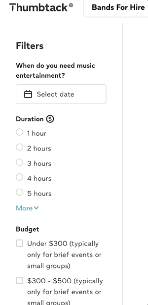 As you can see, Thumbtack has a clean yet informative UI with thorough filters.